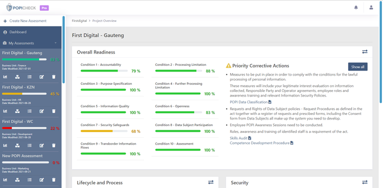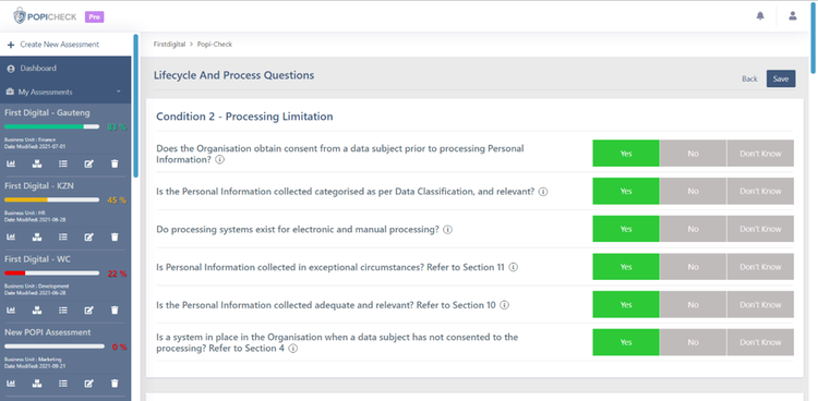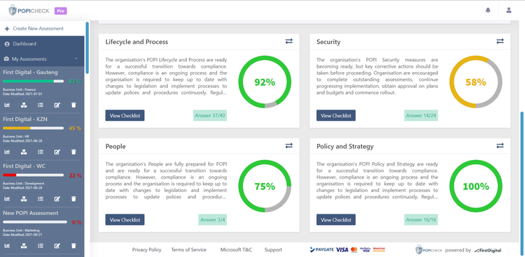 POPICheck is a cloud-based rapid assessment tool that helps organisations gauge their readiness for compliance with the POPIA Act. It provides a framework that helps companies make sense of the compliance requirements, by providing a structured, guided approach to the process. Users require no knowledge of the POPI Act in order to create and run assessments. They simply login, create an assessment and begin answering questions.